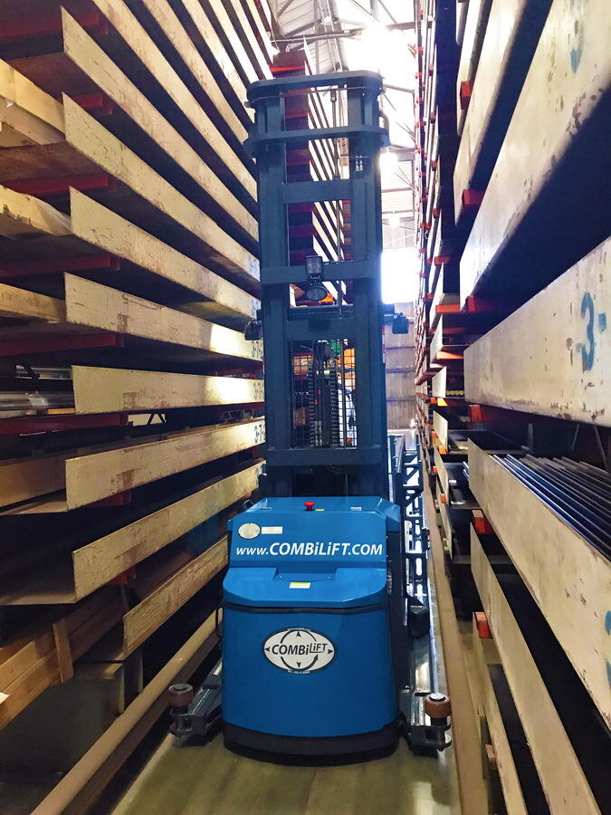 The Combi-OP is a safe and robust work platform designed for the efficient processing of multiple orders and long loads. It features a standing operator overhead guard, a multi-function steering and function console, and a platform end entry/exit gate, ensuring both safety and usability. Additionally, it includes dual speed control and an operator display, making it a versatile solution for various operational needs.