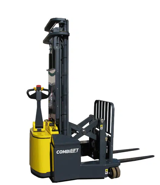 This used 2022 Combilift WR4 forklift is a 4-way pedestrian reach stacker designed for handling lighter loads in tight spaces. This electric unit can easily carrier 3,200 lbs in any direction. The patented multi-position tiller arm provides class leading visibility and control. The compact dimensions of the WR4 make if ideal for narrow aisle applications where space is at a premium.